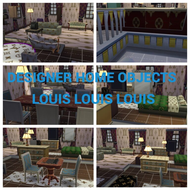 Over twenty Louis Vuitton objects for your house or where ever you want to place them. The pack is all home stuff and comes with Three Mats, Lamps including a table lamp, a dinning table and chairs, Sofas, a chest set, beds, a bath, a toilet and a sink and lots more stuff that I can't remember from the top of my head.